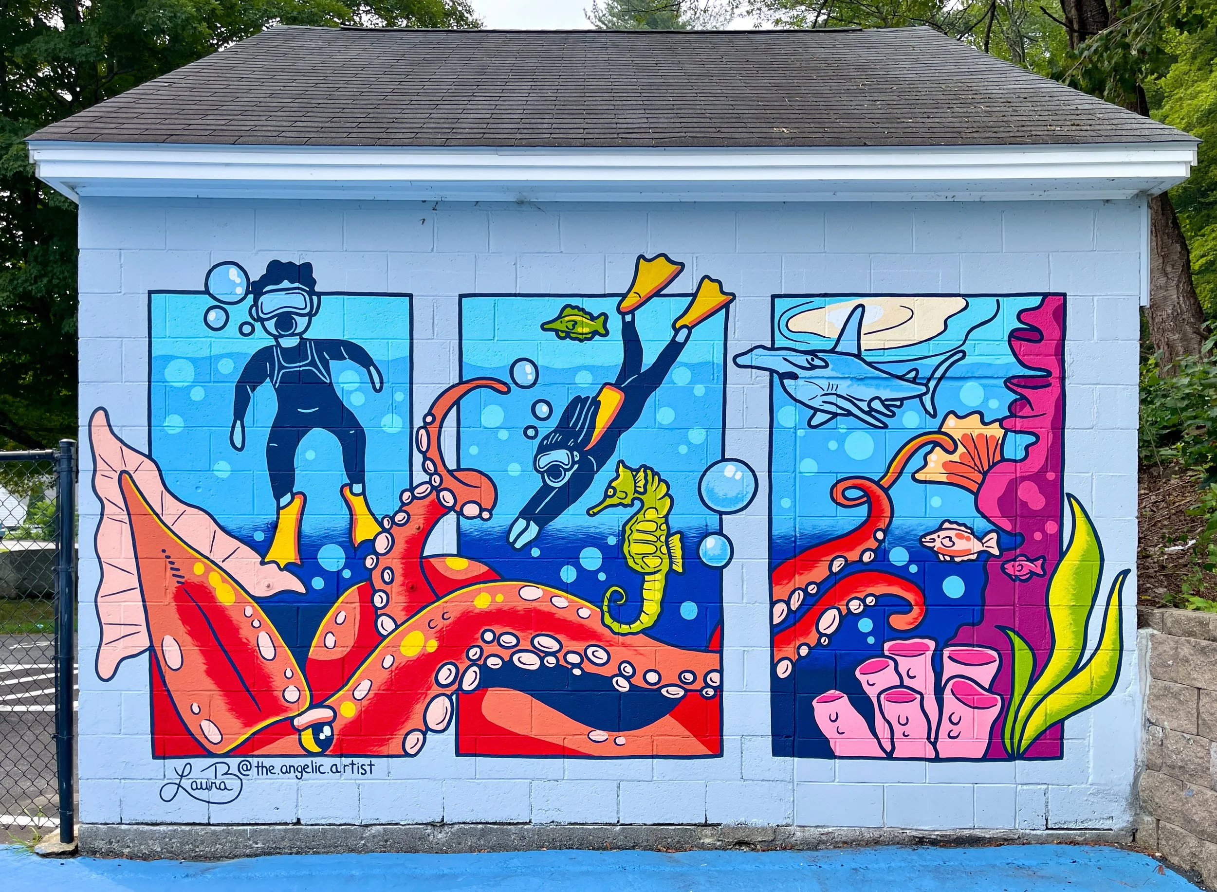 Designed and hand-painted the shed located at the splash pad within Assabet Park in Northborough, MA. This was the first mural to be town commissioned in the area.