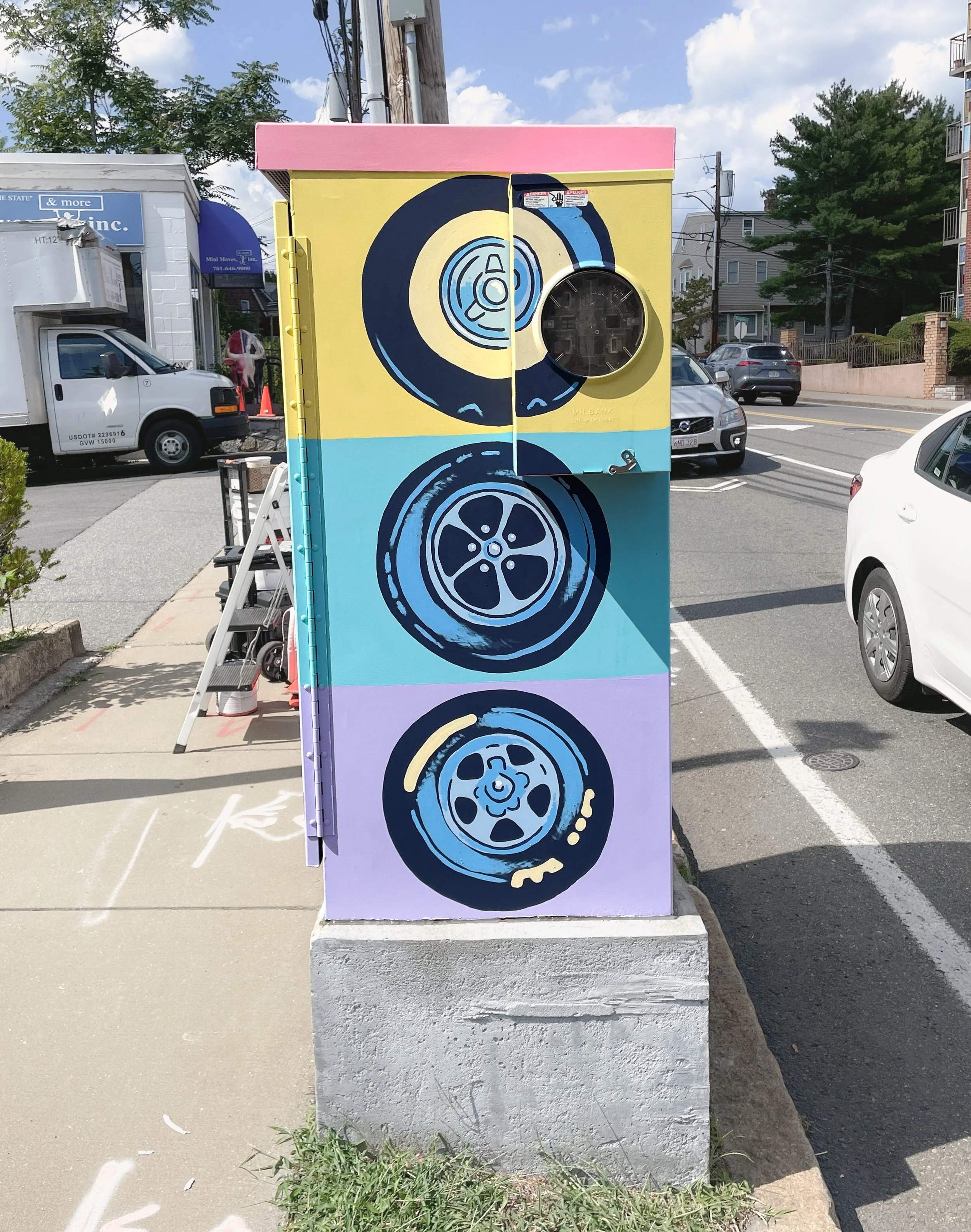 Utility box mural hand-painted in Boston’s Mission Hill neighborhood as part of the annual Paintbox Program hosted by the City of Boston.